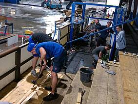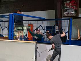Wie heißt es so schön, nach der Saison ist vor der Saison! Aus diesem Grund haben auch unmittelbar nach dem letzten öffentlichen Lauf, den letzten Trainings der Eishockey-Mannschaften die in der Spendenaktion angekündigten Arbeiten begonnen.