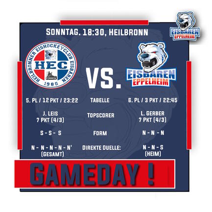 Eine Woche nach dem Hinspiel steht mit dem Rückspiel gegen Heilbronn das letzte Spiel des Jahres an. Nach dem Spiel am Sonntag ist zu diesem Duell alles gesagt, die ECE-Bären dominierten die Partie, die HEC Eisbären erzielten die Tore. Im Rückspiel muss also nach nun 136 torlosen Minuten der Knoten gelöst werden, um in Heilbronn etwas zählbares mit zu nehmen.